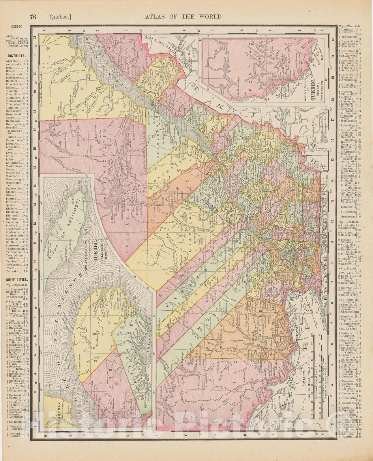 • Historic Map : Quebec 1900 , Universal Atlas World , Vintage Wall Art
