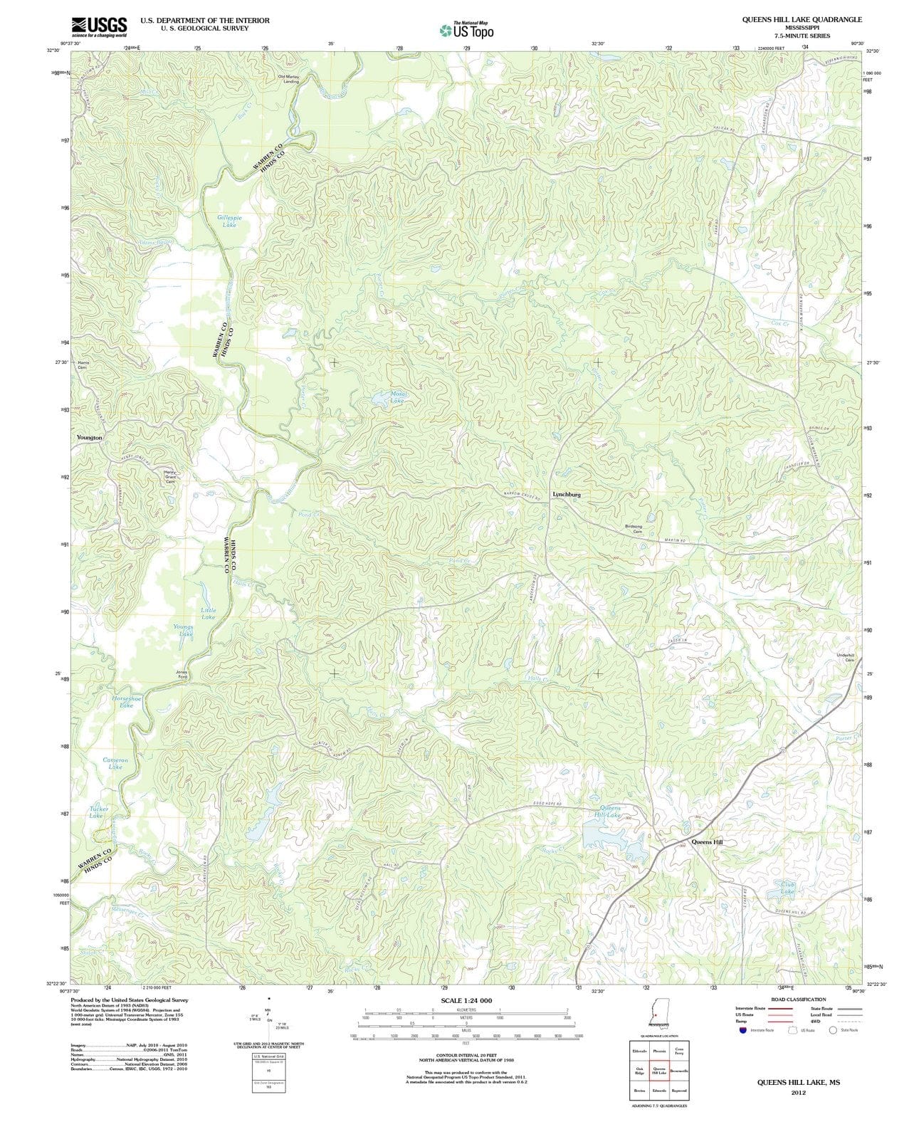 • 2012 Queens Hill Lake, MS - Mississippi - USGS Topographic Map