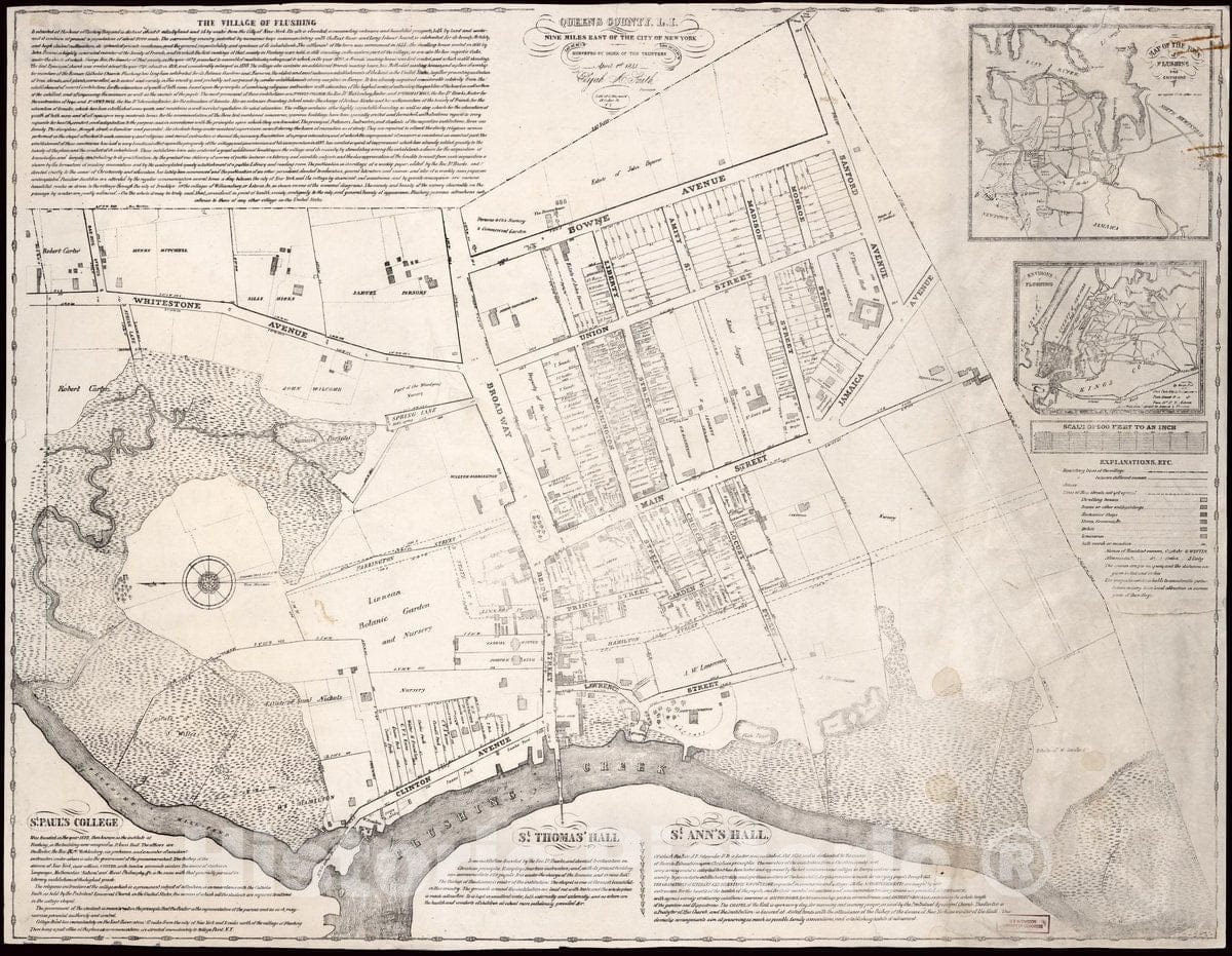 Historic 1841 Map - The Village of Flushing, Queens County, L.I. : Nine Miles East of The City of New York : LAT. 40° 45 1N, lon. 73° 09 58W