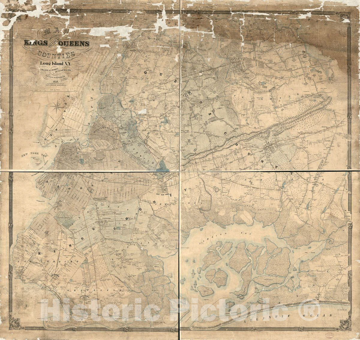 Historic 1852 Map - Map of Kings and Part of Queens Counties, Long Island N.Y.