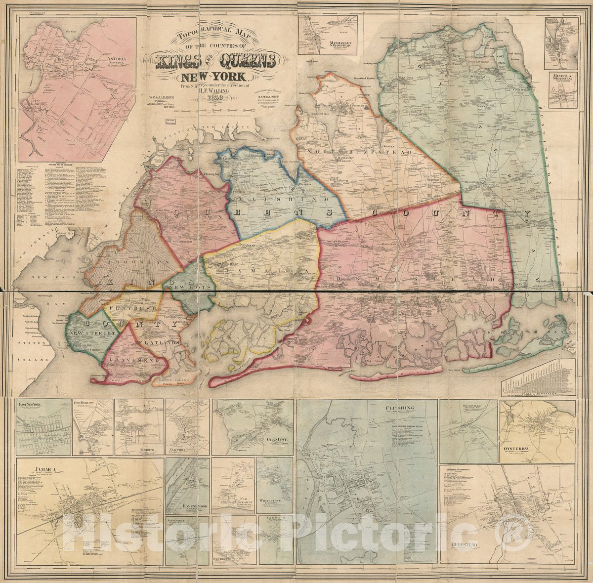 Historic 1859 Map - Topographical map of The Counties of Kings and Queens, New York