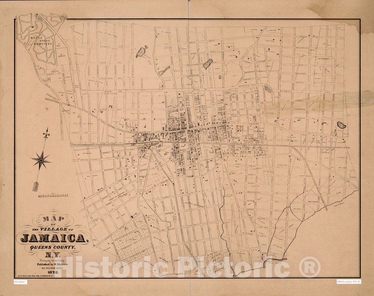 Historic 1876 Map - Map of The Village of Jamaica, Queens County, N.Y. : Showing Every lot and Building.