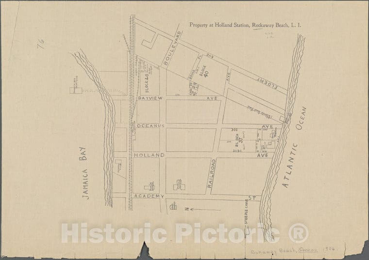 Historic 1906 Map - Map Of Property At Holland Station, Rockaway Beach, Long Island.Of New York City And State - Queens - Vintage Wall Art