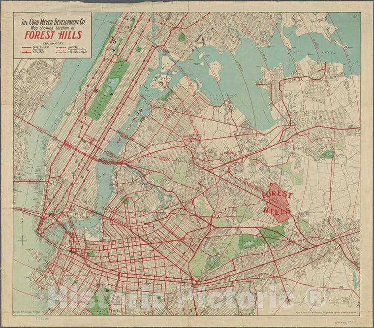 Historic 1908 Map - Thecord Meyer Development Co. Map Showing Location Of Forest Hills.Of New York City And State - Queens - Vintage Wall Art