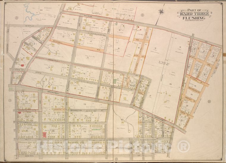 Historic 1908 Updated To 1913 Map - Queens, Vol. 3, Double Page Plate No. 7; Part Of Ward Three Flus - Vintage Wall Art
