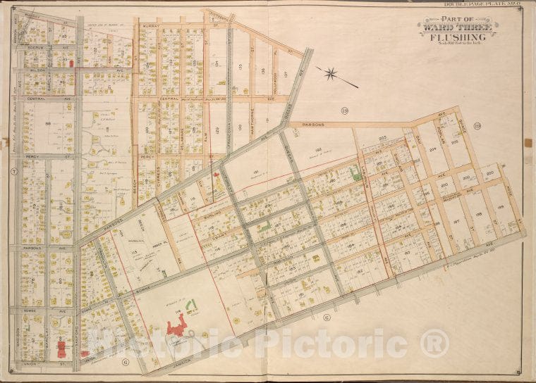 Historic 1908 Updated To 1913 Map - Queens, Vol. 3, Double Page Plate No. 8; Part Of Ward Three Flus - Vintage Wall Art