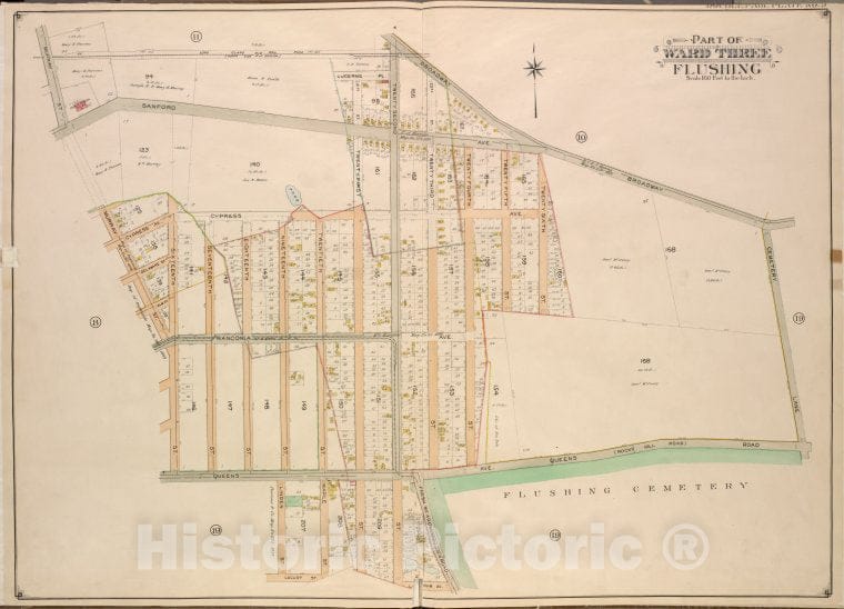 Historic 1908 Updated To 1913 Map - Queens, Vol. 3, Double Page Plate No. 9; Part Of Ward Three Flus - Vintage Wall Art