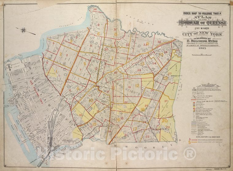 Historic 1913 Map - Index Map To Volume Two A. Atlas Of The Borough Of Queens 2Nd Wa