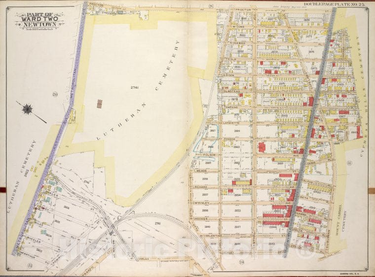 Historic 1913 Map - Queens, Vol. 2A, Double Page Plate No. 25; Part Of Ward Two Newt