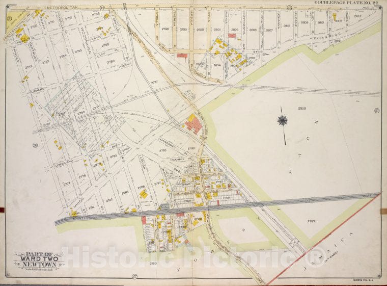 Historic 1913 Map - Queens, Vol. 2A, Double Page Plate No. 27; Part Of Ward Two Newt