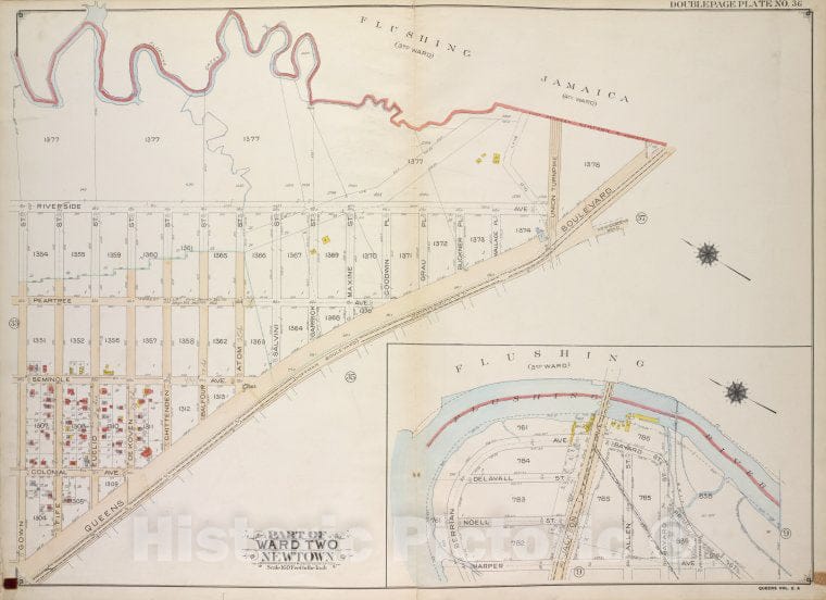 Historic 1913 Map - Queens, Vol. 2A, Double Page Plate No. 36; Part Of Ward Two Newt