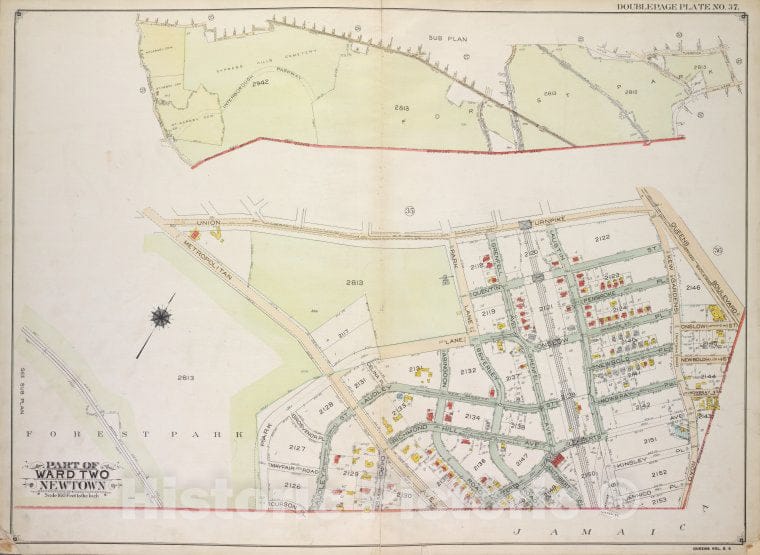 Historic 1913 Map - Queens, Vol. 2A, Double Page Plate No. 37; Part Of Ward Two Newt