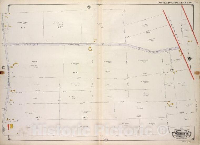Historic 1913 Map - Queens, Vol. 1A, Double Page Plate No. 16; Part Of Ward 4 Jamaic