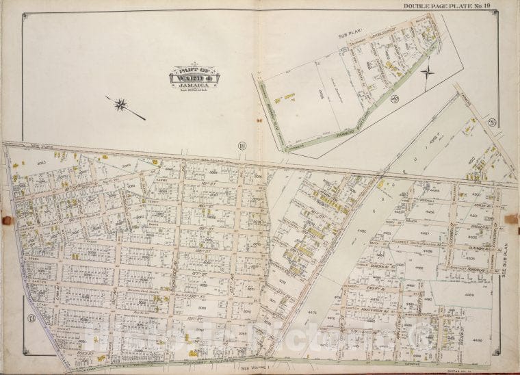 Historic 1913 Map - Queens, Vol. 1A, Double Page Plate No. 19; Part Of Ward 4 Jamaic