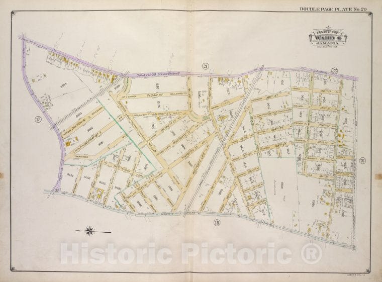 Historic 1913 Map - Queens, Vol. 1A, Double Page Plate No. 20; Part Of Ward 4 Jamaic