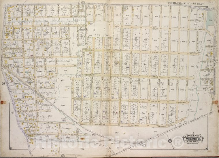 Historic 1913 Map - Queens, Vol. 1A, Double Page Plate No. 21; Part Of Ward 4 Jamaic