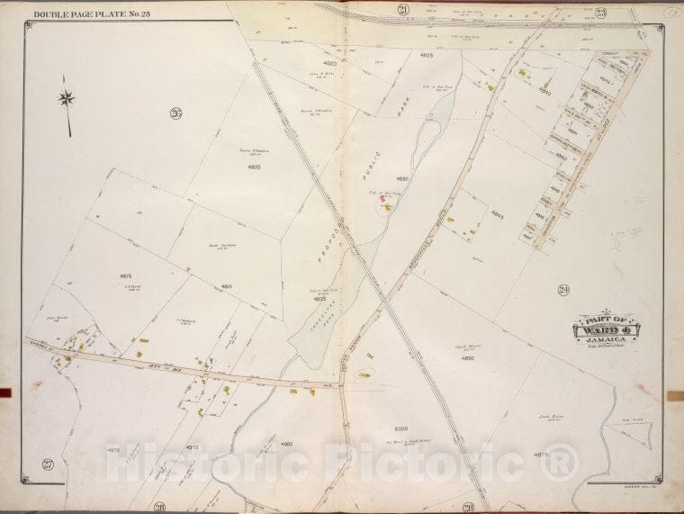 Historic 1913 Map - Queens, Vol. 1A, Double Page Plate No. 25; Part Of Ward 4 Jamaic
