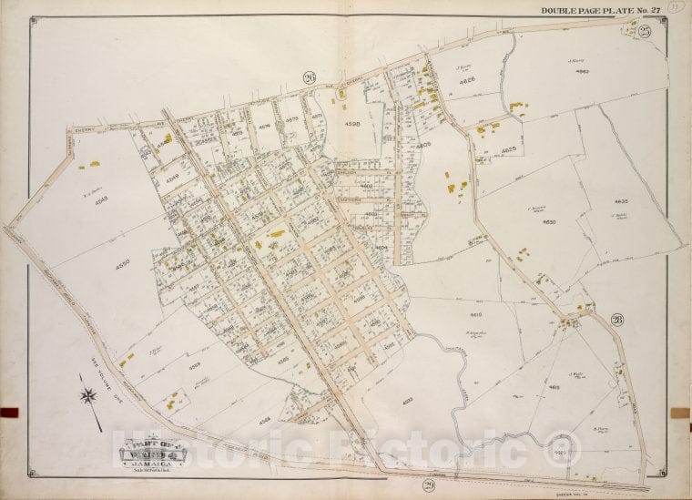Historic 1913 Map - Queens, Vol. 1A, Double Page Plate No. 27; Part Of Ward 4 Jamaic