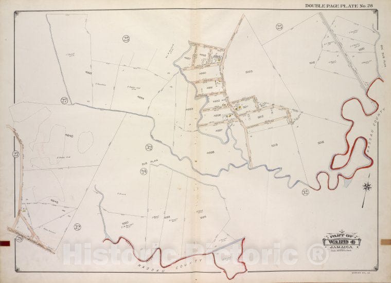 Historic 1913 Map - Queens, Vol. 1A, Double Page Plate No. 28; Part Of Ward 4 Jamaic
