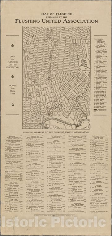 Historic 1920 Map - Map Of Flushing Published By The Flushing United Association. List Of References To Public Buildings.Of New York City And State - Queens - Vintage Wall Art