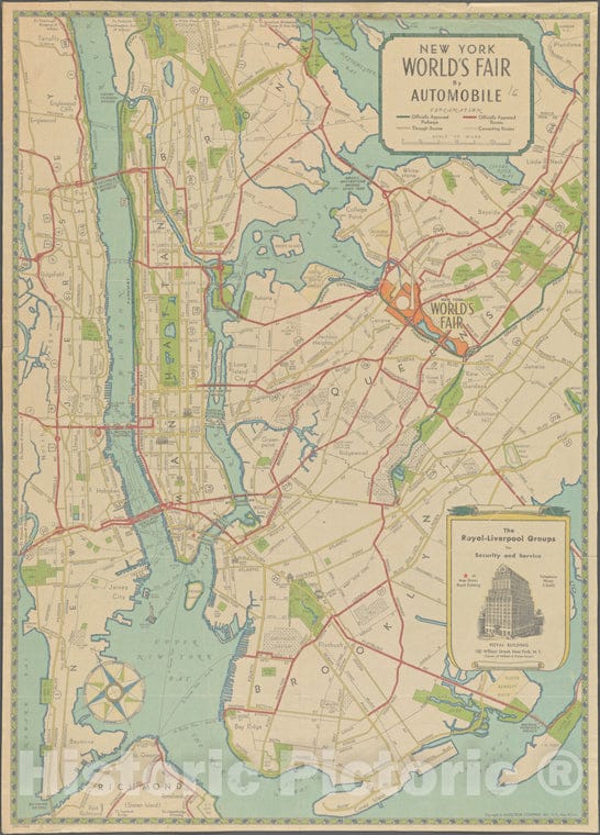 Historic 1939 Map - New York World'S Fair By Automobile. New York: Hagstrom Company, Inc.Of New York City And State - Queens