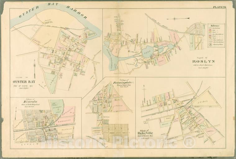 Historic Map - 1891 Queens County, New York (N.Y.) Plate 26: Village Of Oyster Bay, Oyster Bay. - Village Of Roslyn, North Hempstead. - Village Of Mineola