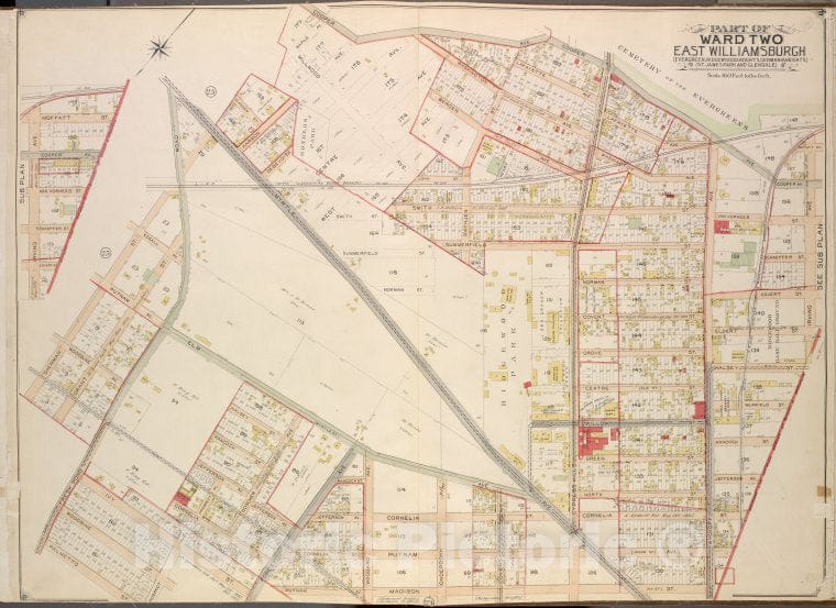 • .Historic Map - 1903 Queens County, New York (N.Y.) Queens, East Williamsburgh (Evergreen, Ridge Woodheights, Germaniaheights), (St. James Park And Glendale) - Vintage Wall Art