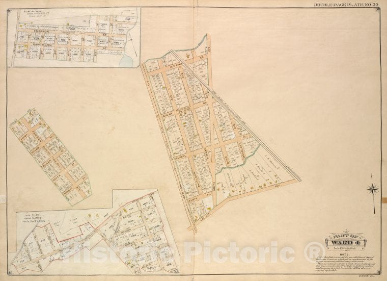 Historic Map - 1907 Queens, New York (N.Y.) Ward 4; Sub Plan From Plate Nos. 18 And 19; [ Farmers, Emerson, Hawthorn, 1St, 2Nd, 3Rd, 4Th, 5Th, 6Th, 7Th - Vintage Wall Art