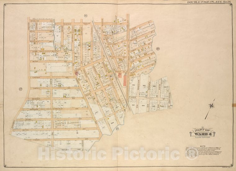 Historic Map - 1907 Queens, New York (N.Y.) Ward 4; [Woodlawn, Remsen, New York, Claude Pl, Mathias, James, Oak, Platt ; Including Woodland, Boyland, Evergreen, Vintage Wall Art