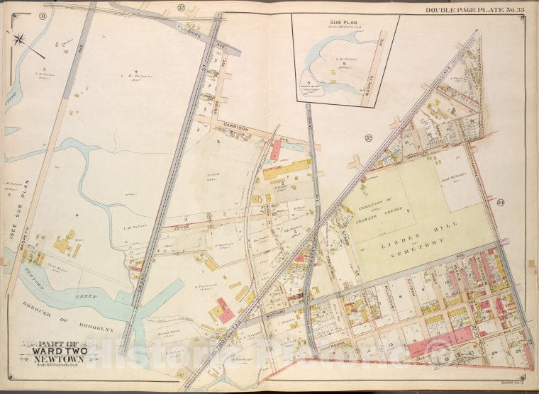 Historic Map - 1908 Queens (New York, N.Y.), Flushing Ave, Union Ave, Carrison Ave, Flushing Ave, Metropolitan Ave; Stanhope St. (Summit St.), Boundary Line Bet - Vintage Wall Art