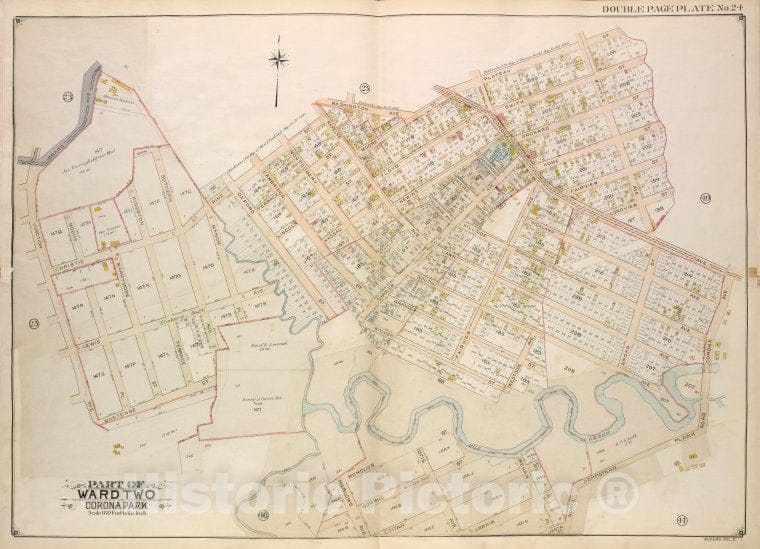 Historic Map - 1908 Queens (New York, N.Y.), Grand Ave, Pine, Rapelye Ave, Washington Ave, Moore, Central Ave, Corona Ave, Plateau, Smith, Orchard, Home, Vintage Wall Art
