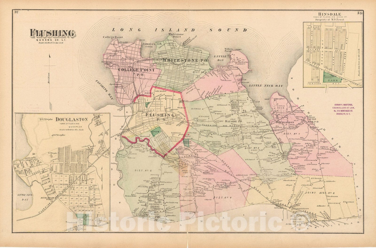 • Historic Map : Atlas of Long Island, New York, Flushing & Queens 1873 , v4, Vintage Wall Art