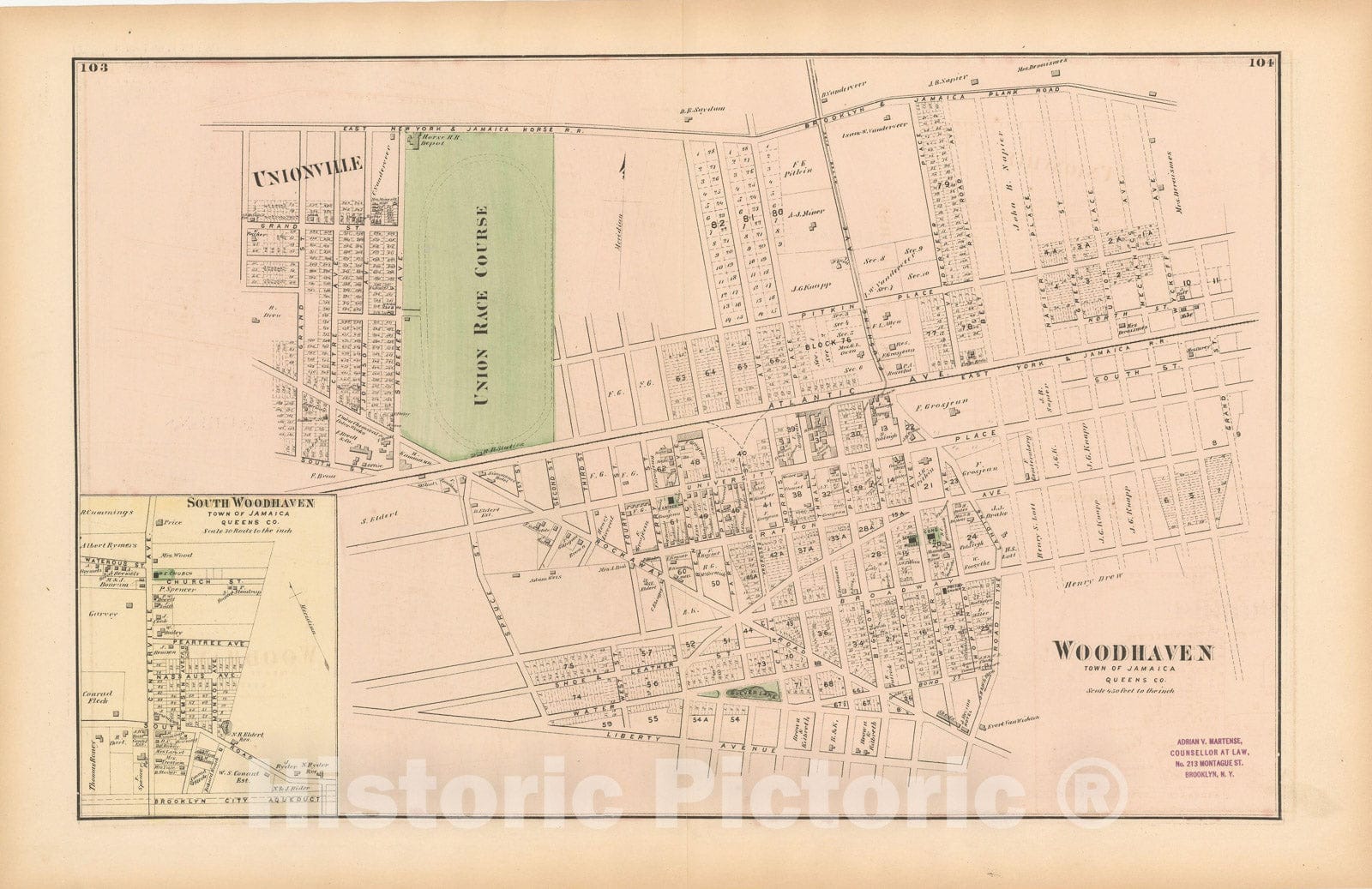 Historic Map : Atlas of Long Island, New York, Jamaica & Queens 1873 , v2, Vintage Wall Art