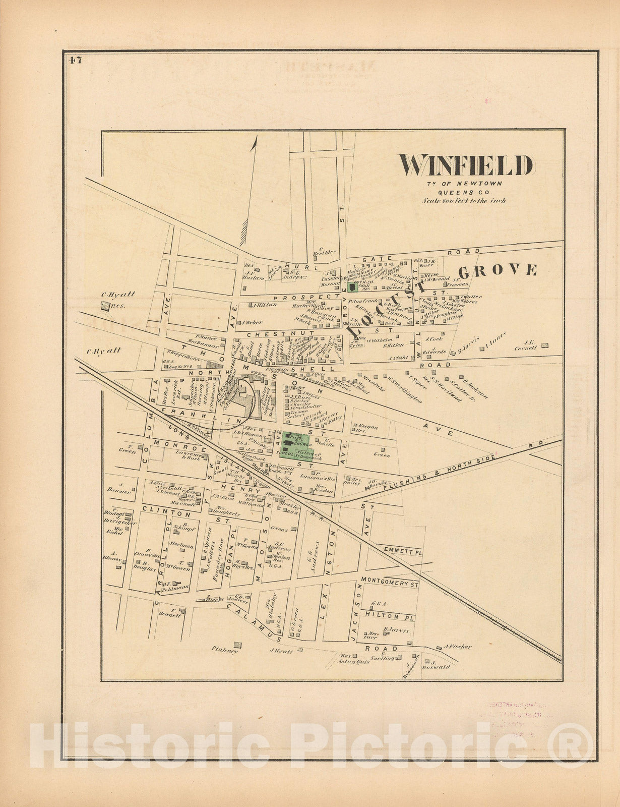 Historic Map : Atlas of Long Island, New York, Newtown & Queens 1873 , v2, Vintage Wall Art