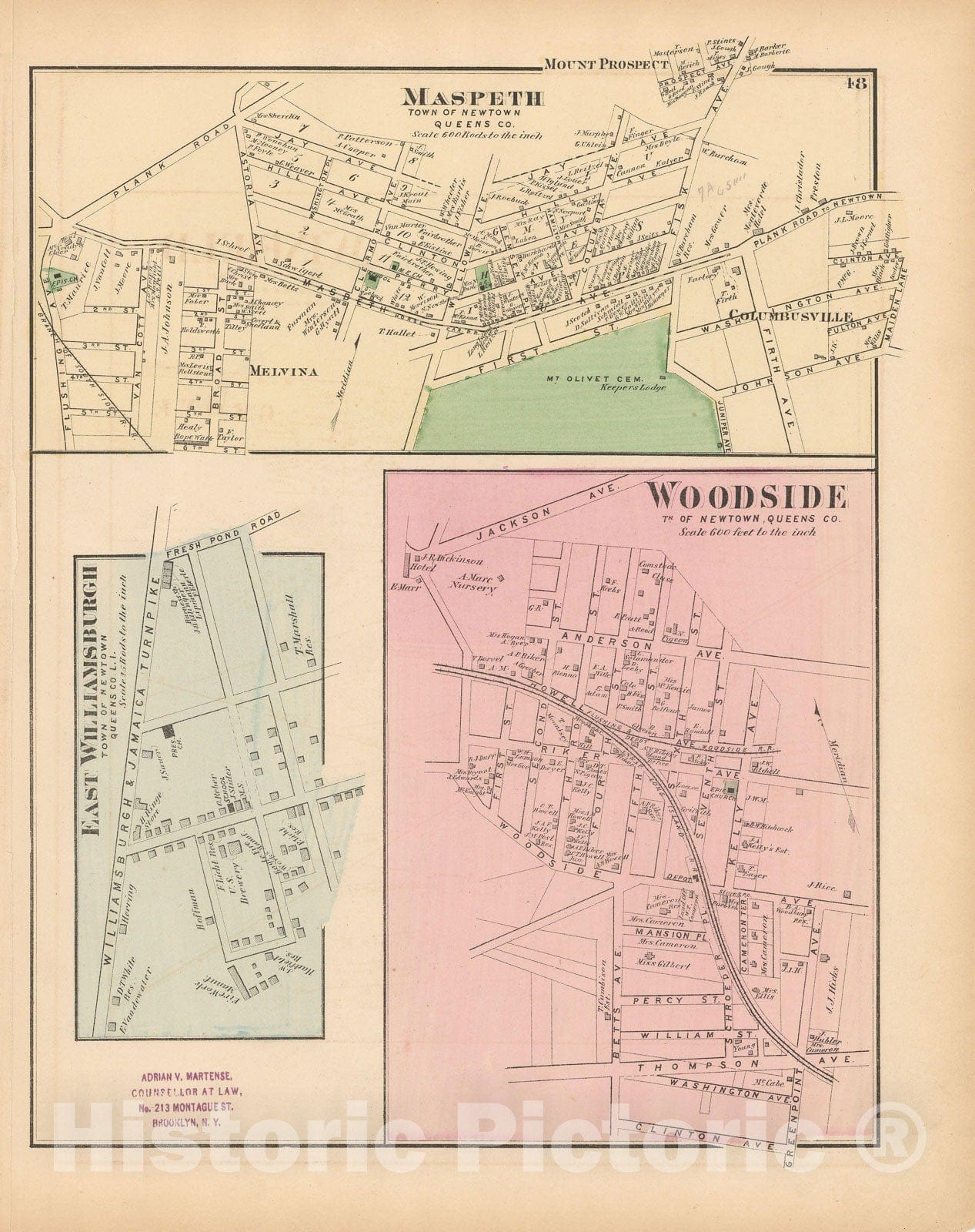 Historic Map : Atlas of Long Island, New York, Newtown & Queens 1873 , v3, Vintage Wall Art