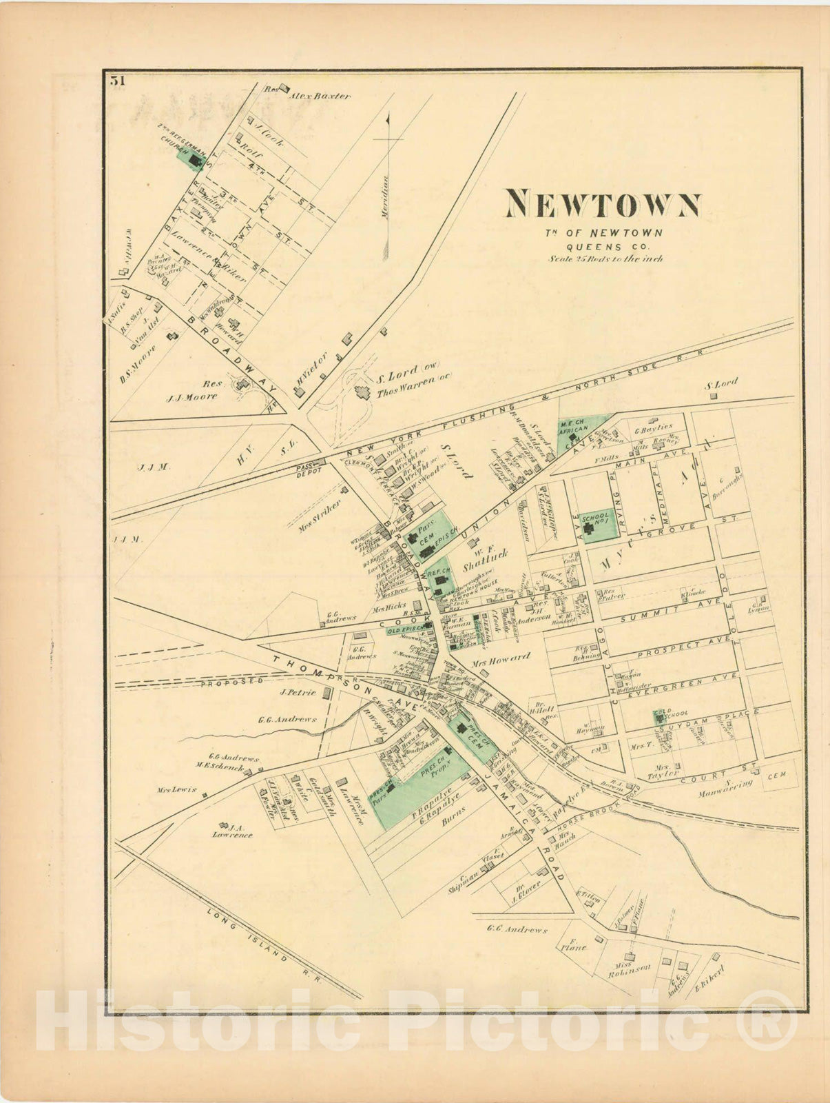 Historic Map : Atlas of Long Island, Newtown & Queens 1870 , Vintage Wall Art