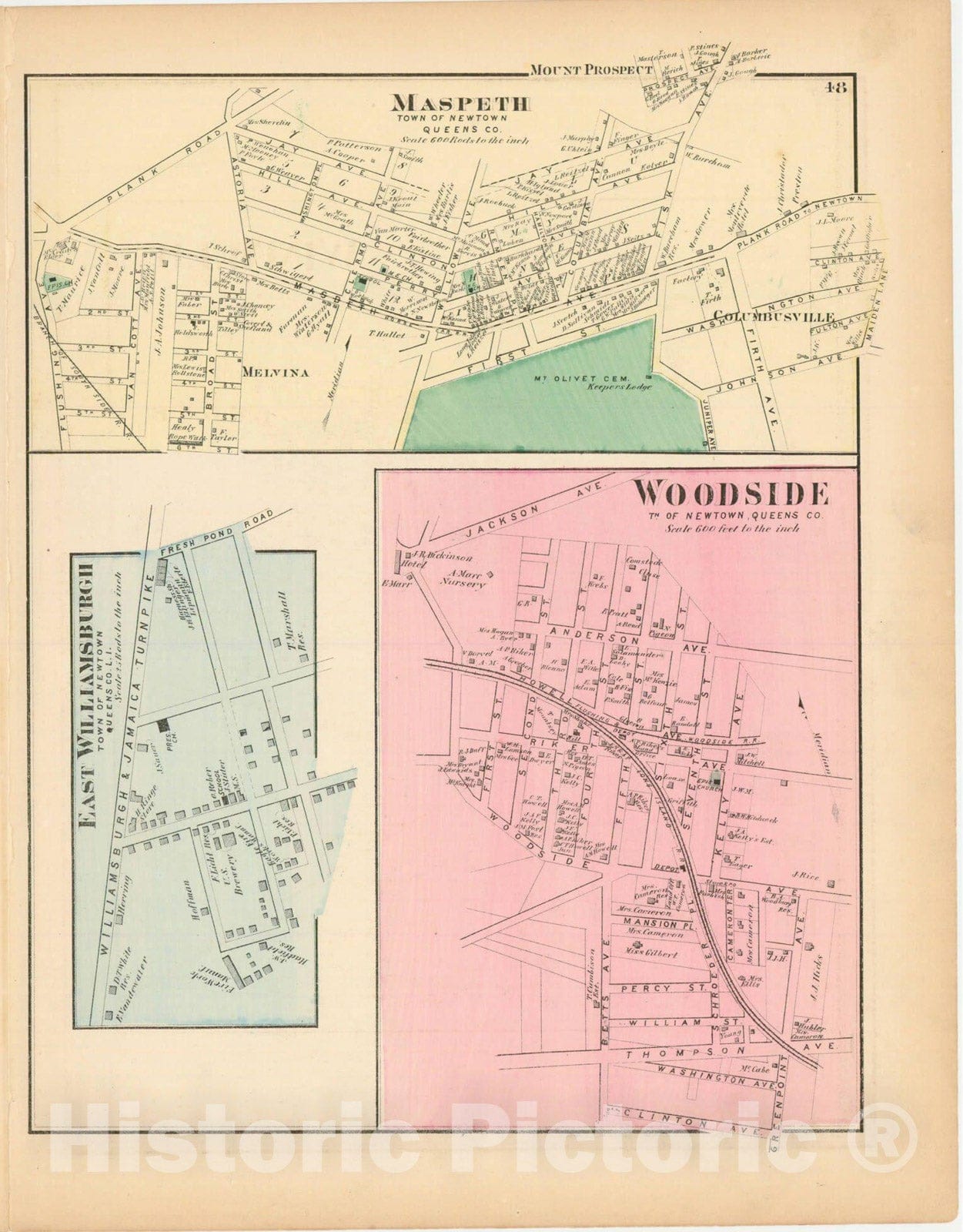 Historic Map : Atlas of Long Island, Newtown & Queens 1870 , v2, Vintage Wall Art