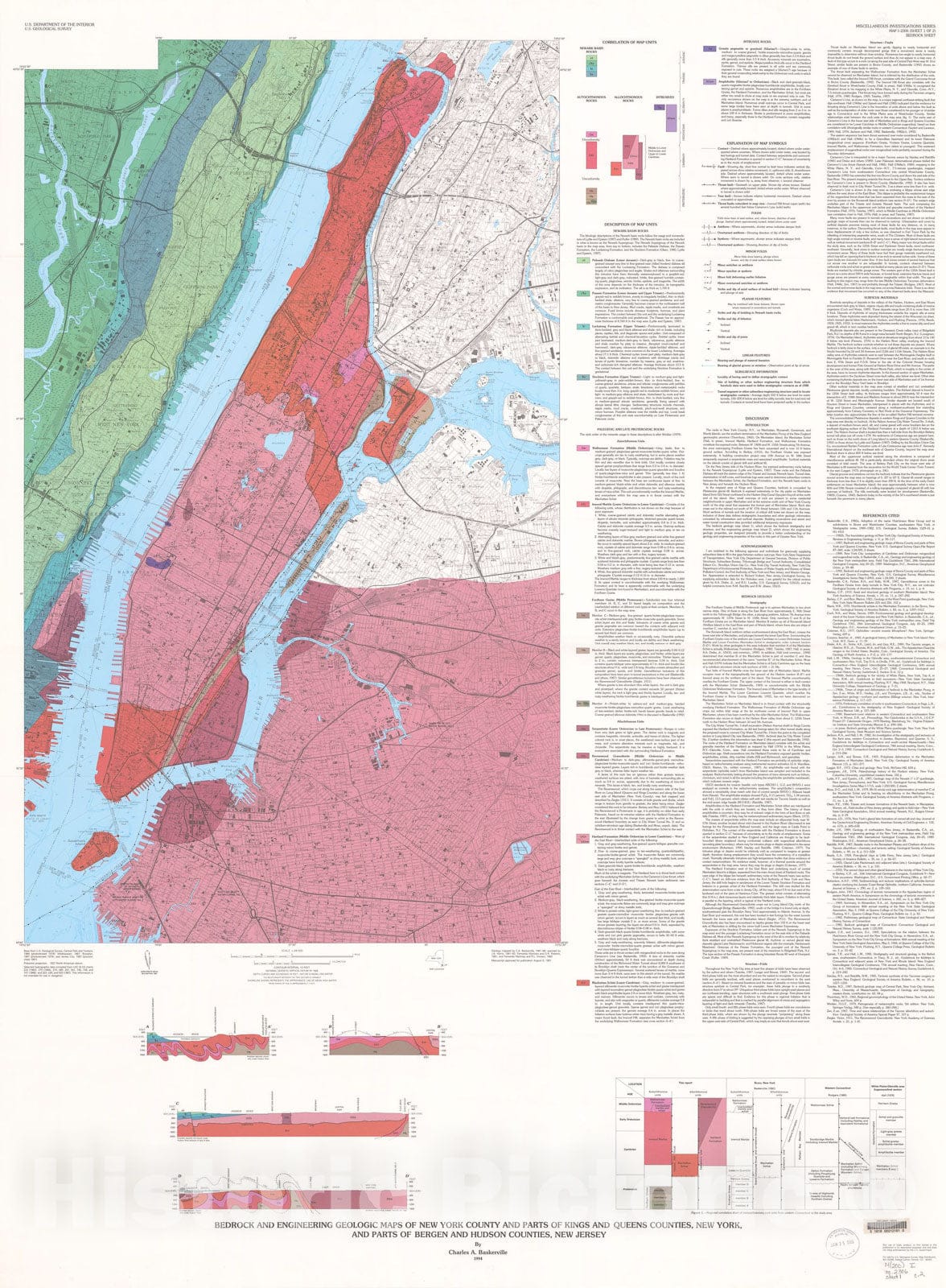 Map : Bedrock and engineering geologic maps of New York County and parts of Kings and Queens Counties, New York, and parts of Bergen, 1994 Cartography Wall Art :
