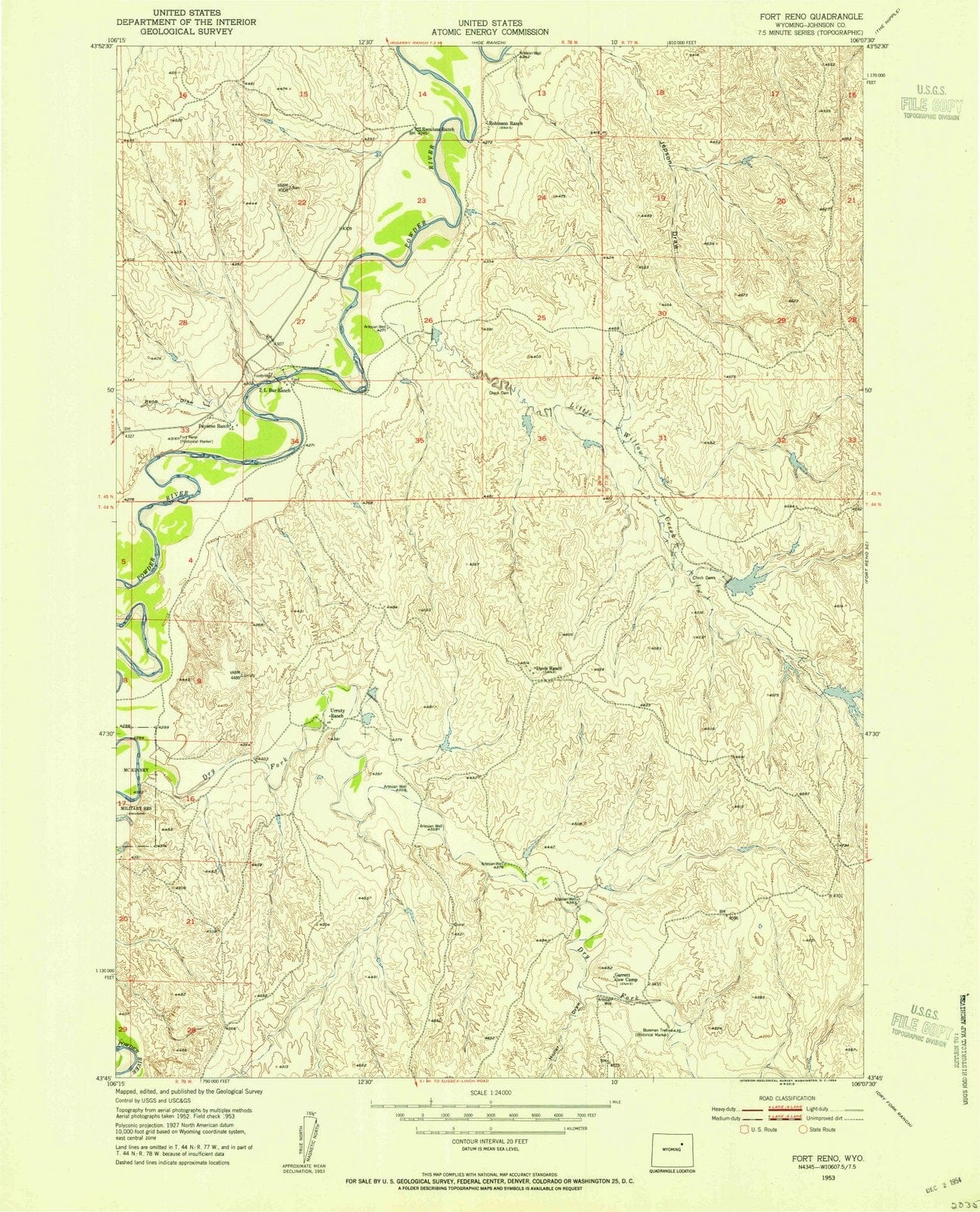 1953 Fort Reno, WY - Wyoming - USGS Topographic Map v2