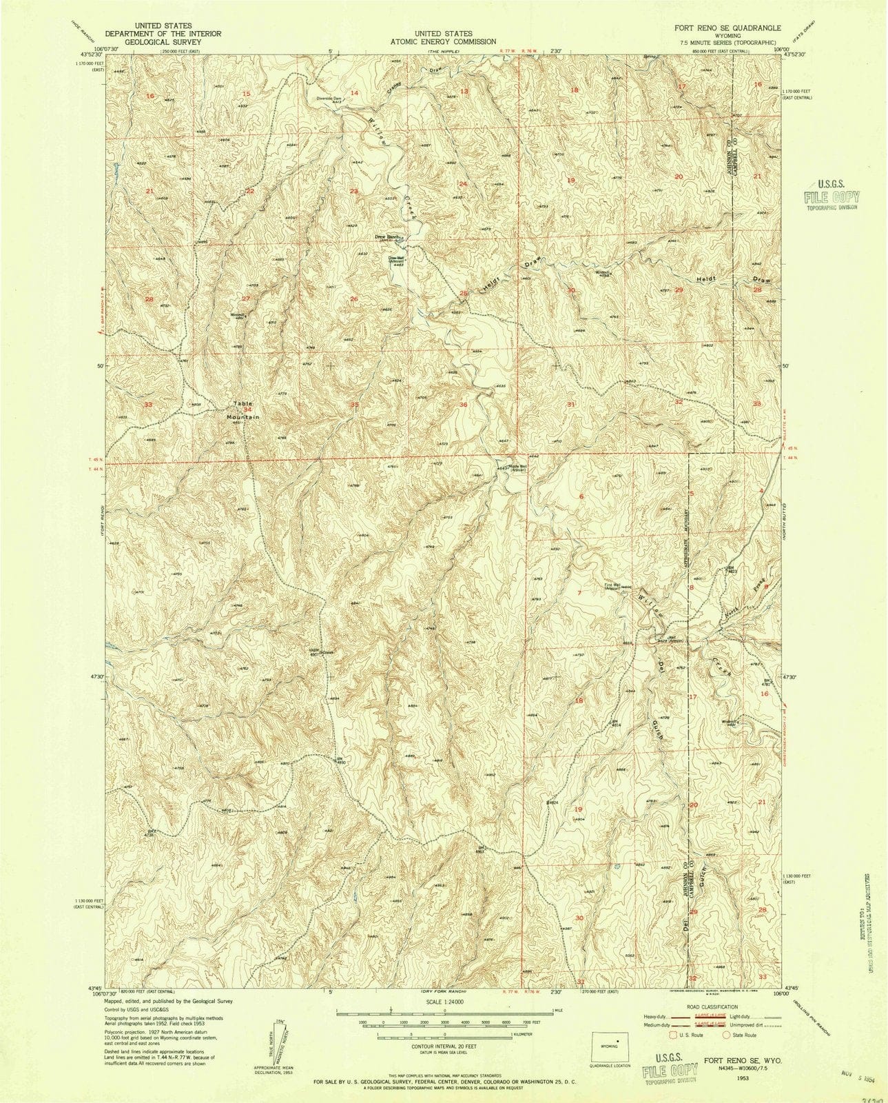 1953 Fort Reno, WY - Wyoming - USGS Topographic Map
