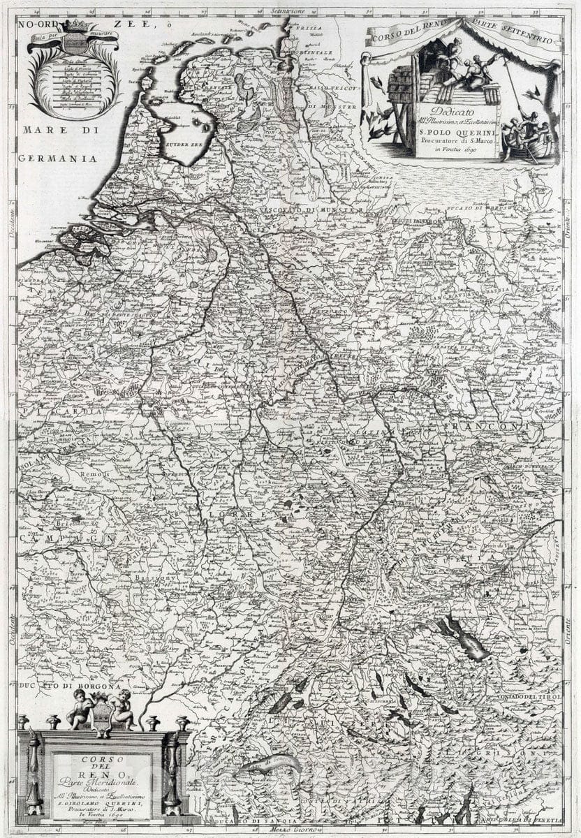 • Historic Map : France, 1690 Composite Map: Corso del Reno Parte Meridionale. , Vintage Wall Art