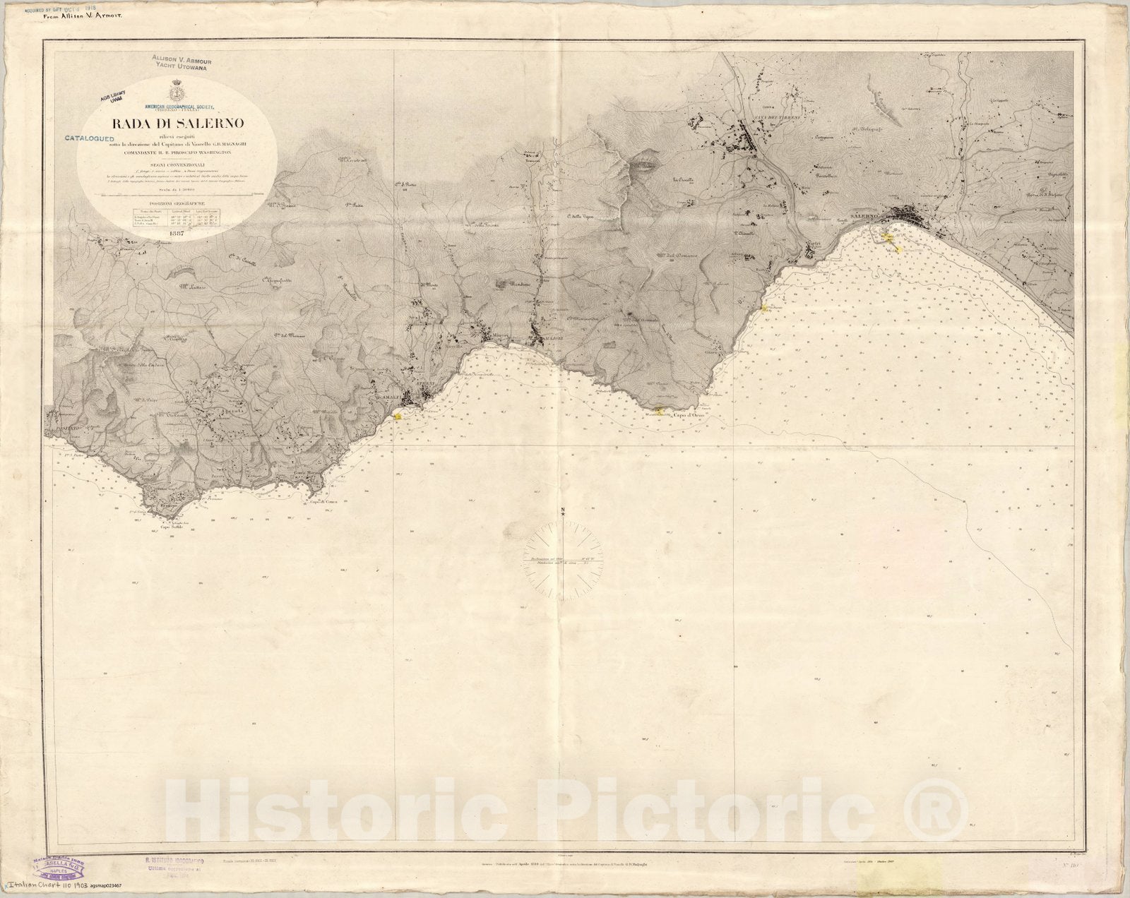 • Map : Salerno, Italy 1903, Tirreno, Italia, Rada di Salerno , Antique Vintage Reproduction