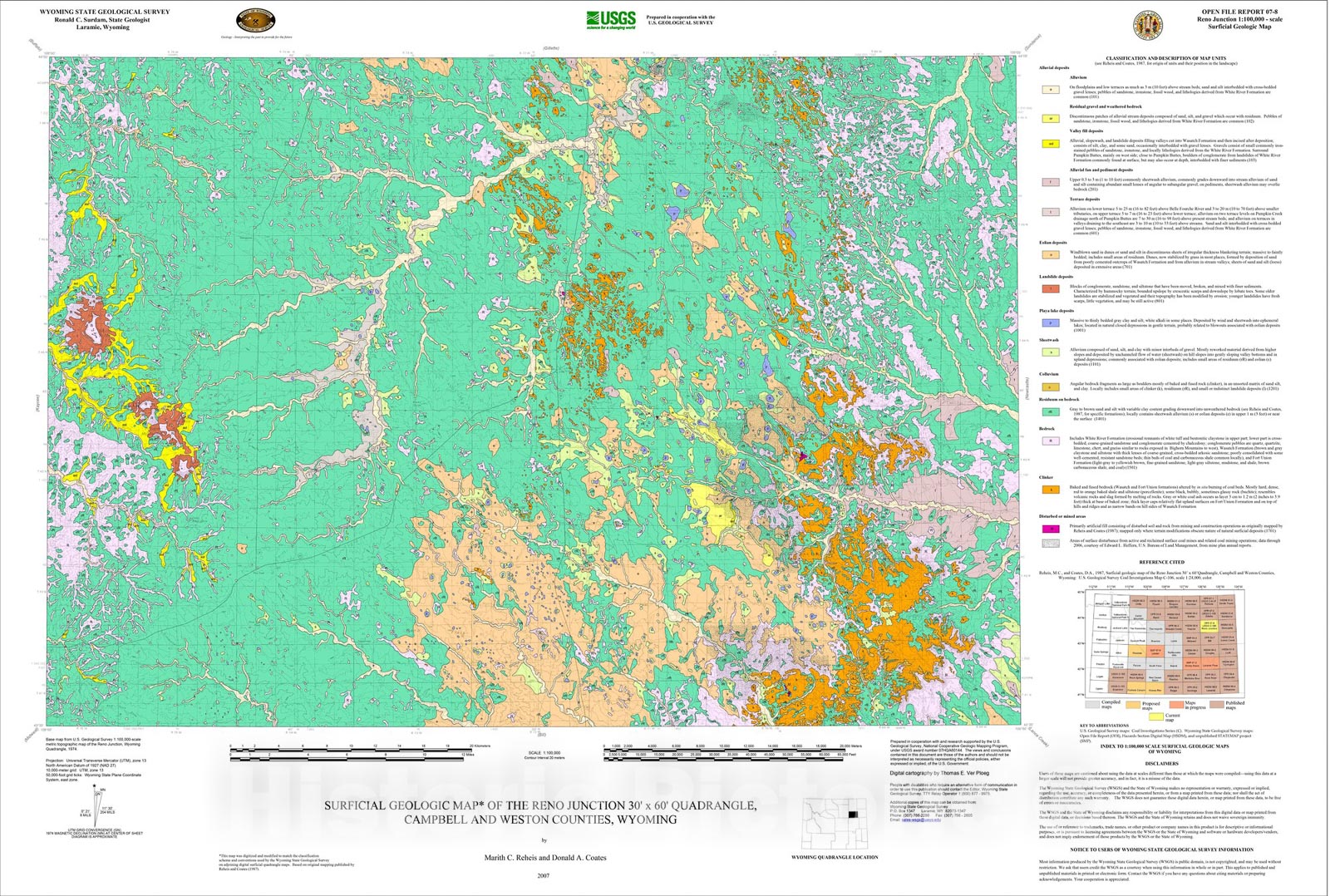• .Map : Surficial geologic map of the Reno Junction 30' x 60' quadrangle, Campbell and Weston Counties, Wyoming, 2007 Cartography Wall Art :