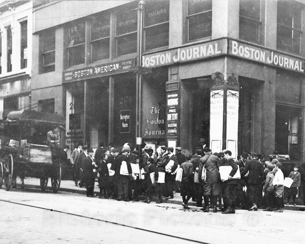 • .Historic Black & White Photo - Boston, Massachusetts - Newsies at the Boston Journal, c1909 -