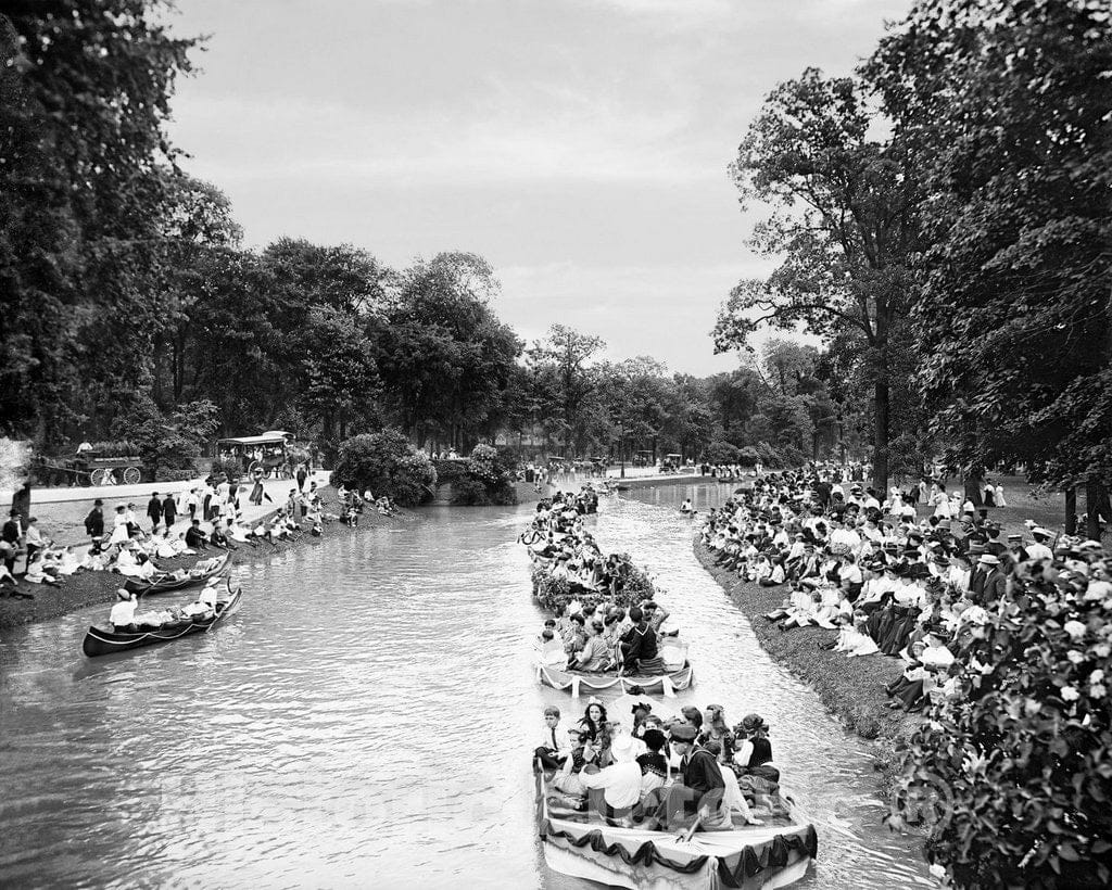 • .Historic Black & White Photo - Detroit, Michigan - Parade in Belle Isle Park, c1908 -