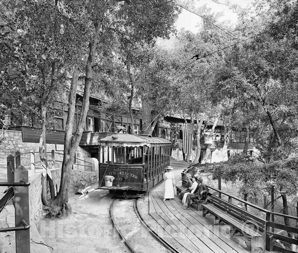 Historic Black & White Photo - Los Angeles, California - Streetcar on Mount Lowe, c1904 -