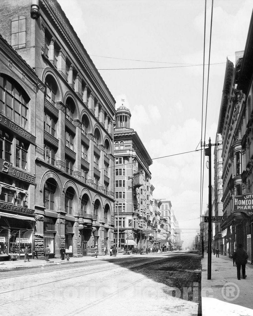 • .Historic Black & White Photo - St. Louis, Missouri - Broadway from Olive Street, c1900 -