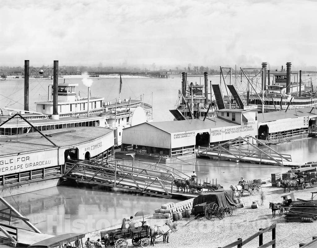 Historic Black & White Photo - St. Louis, Missouri - Steamboats on the Mississippi, c1903 -