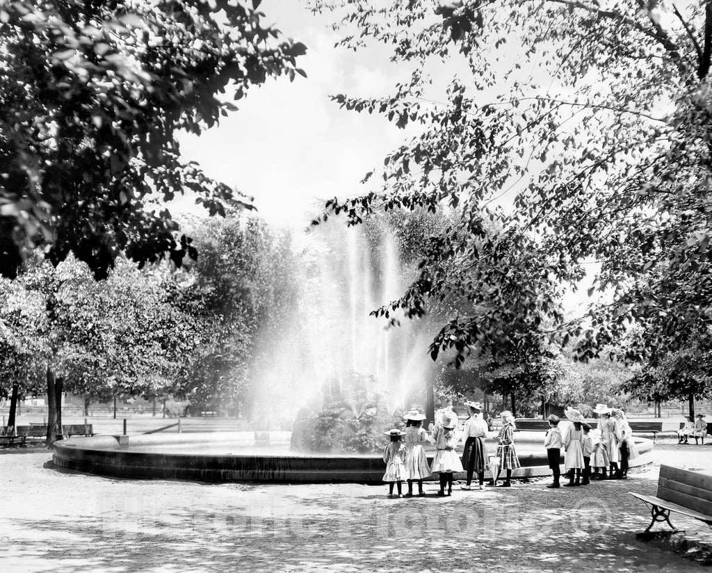 Historic Black & White Photo - Minneapolis, Minnesota - The Fountain in Logan Park, c1904 -
