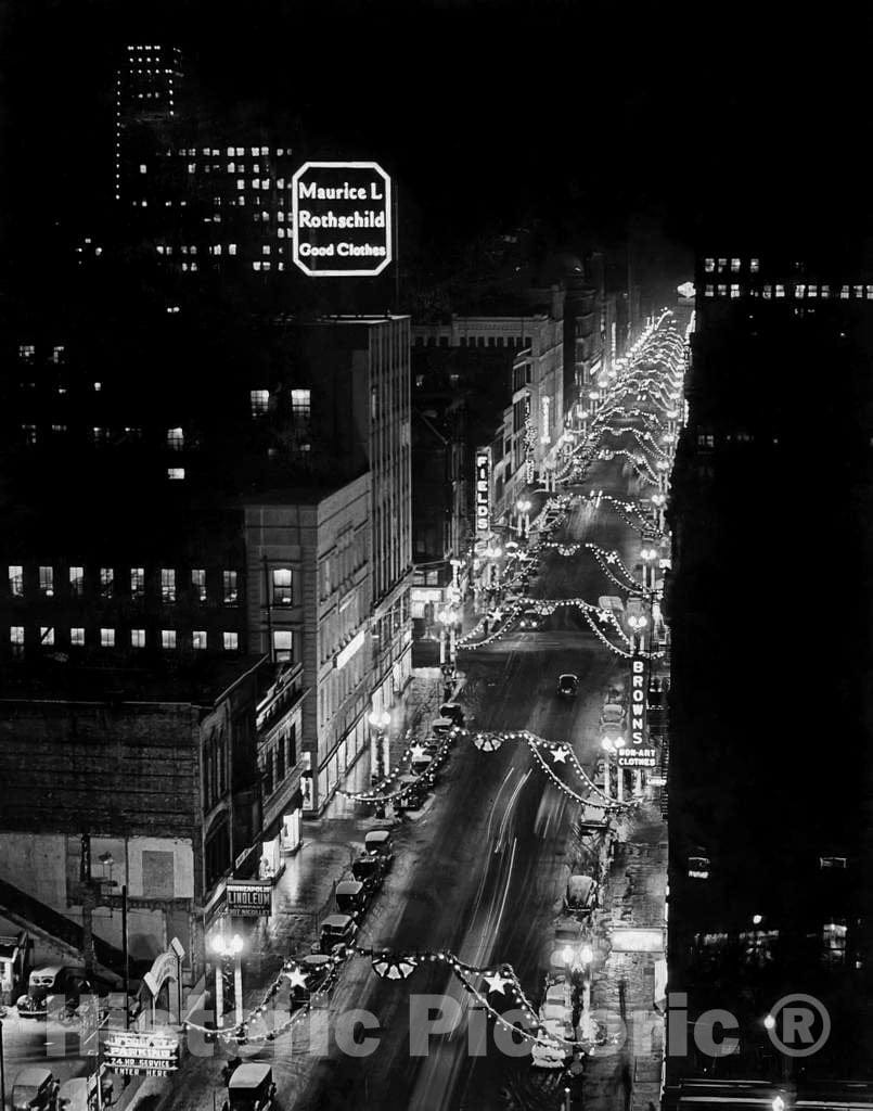 Historic Black & White Photo - Minneapolis, Minnesota - Nighttime on Nicollet Avenue, c1937 -